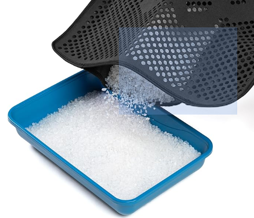 Coleta areia e silica, com abertura que permite o reaproveitamento do material
